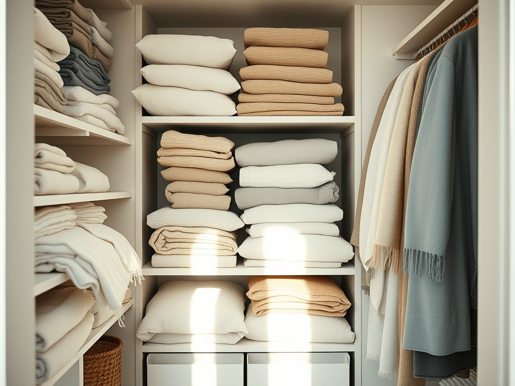 Le linge de maison prend souvent beaucoup de place dans les placards. On ne sait pas comment les ranger et ça déborde facilement.