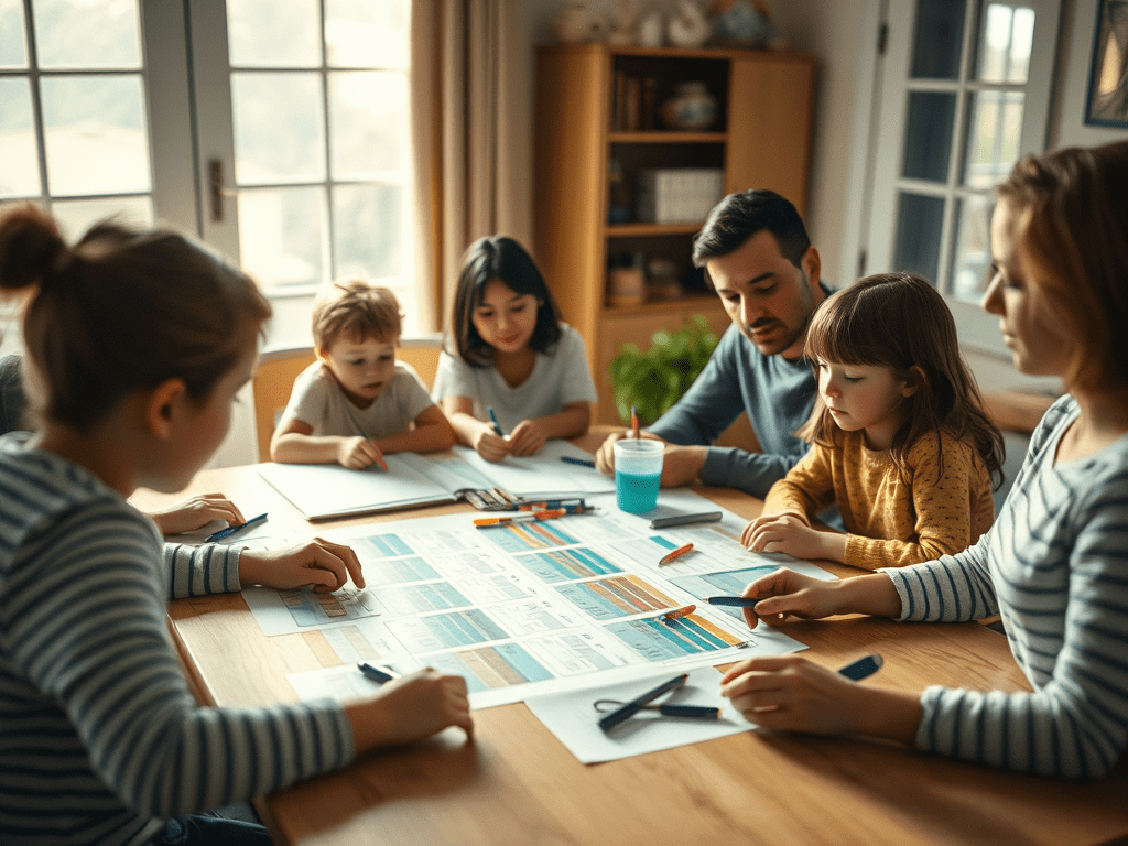 Créez un planning des tâches hebdomadaire où chaque membre de la famille se voit attribuer des responsabilités spécifiques. Assurez-vous de répartir équitablement les tâches en tenant compte de l’âge et des capacités de chacun. Faites en sorte que le planning soit visible et accessible à tous, de manière à ce que chacun sache ce qui est attendu de lui. Plus d’excuse pour quoi fait quoi et quand.